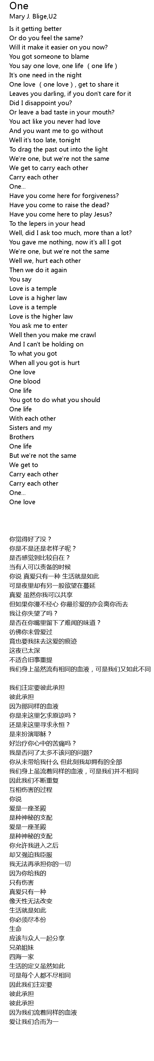 | 歌曲 | One |