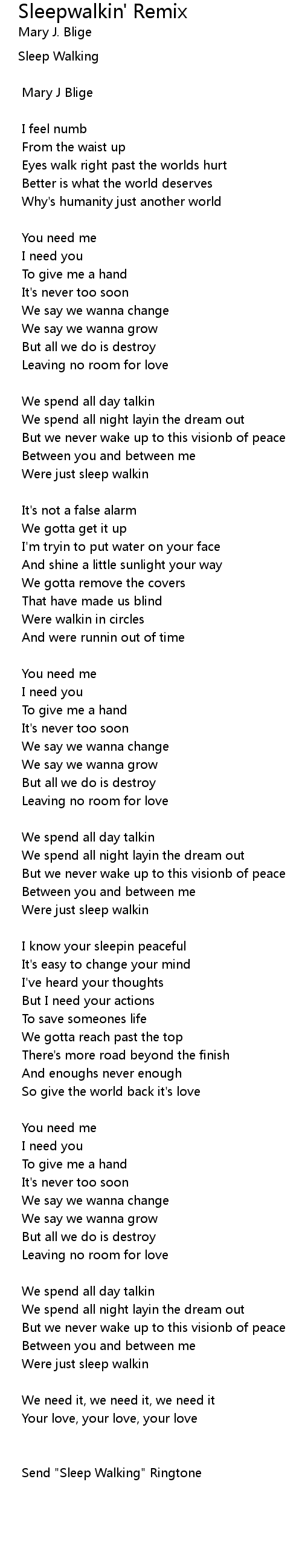 Send "Sleep Walking" Ringtone |