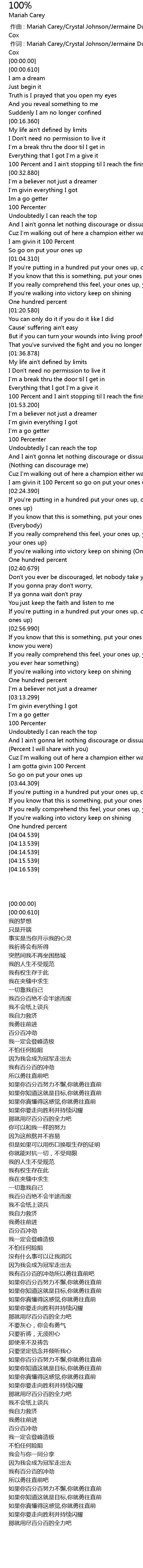 | [01:44.670] | 100 Percent and I ain' t stopping til I reach the finish |