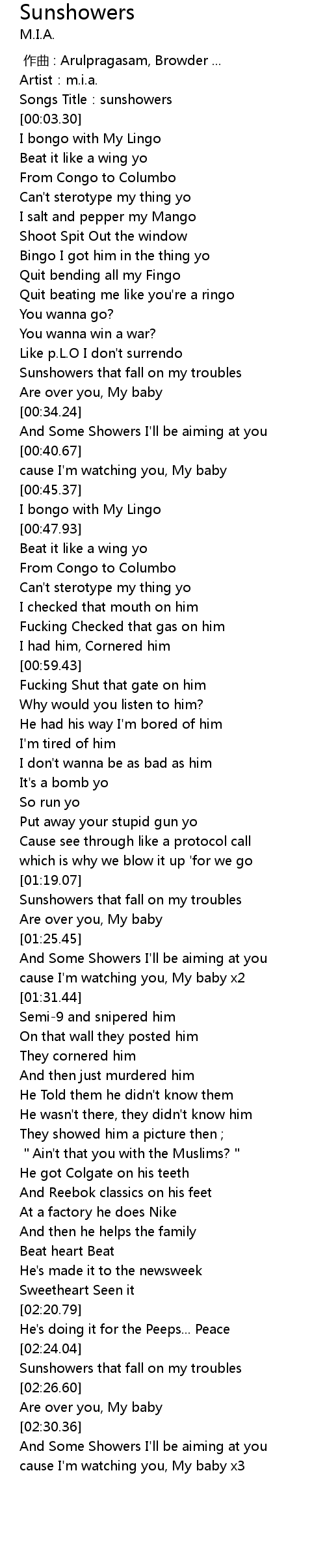 | [02:32.73] | And Some Showers I'll be aiming at you |