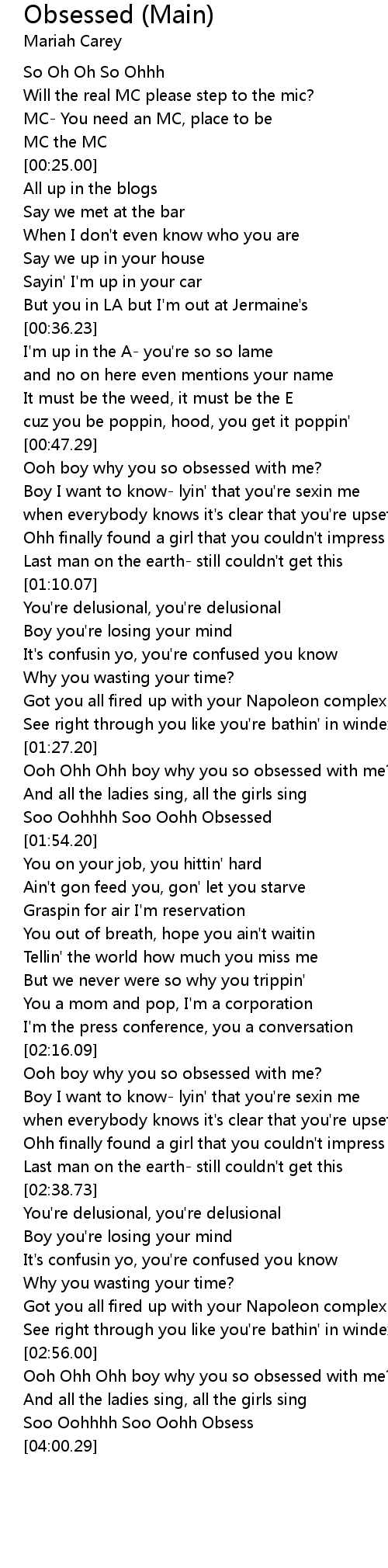 Ooh Ohh Ohh boy why you so obsessed with me? |