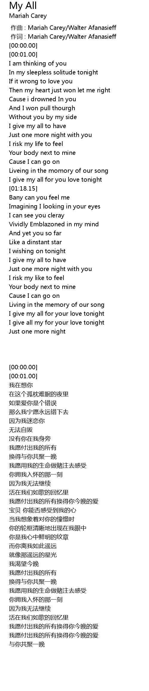 | [00:00.00] | 作词 : Mariah Carey/Walter Afanasieff |