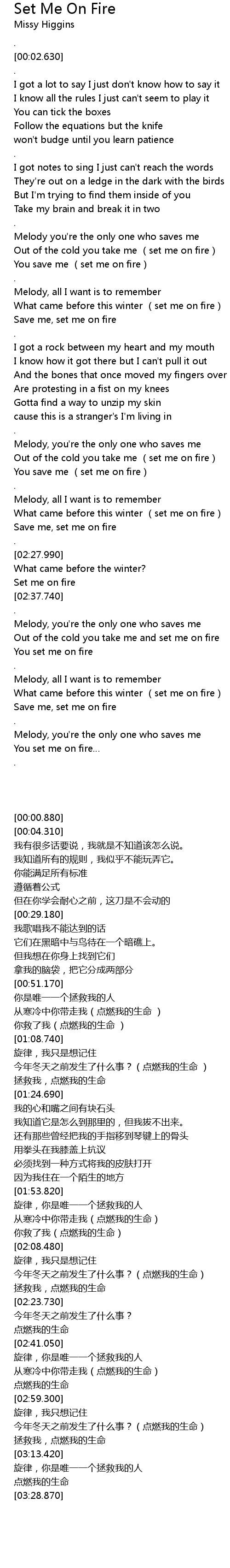 | [00:59.480] | Out of the cold you take me (set me on fire) |