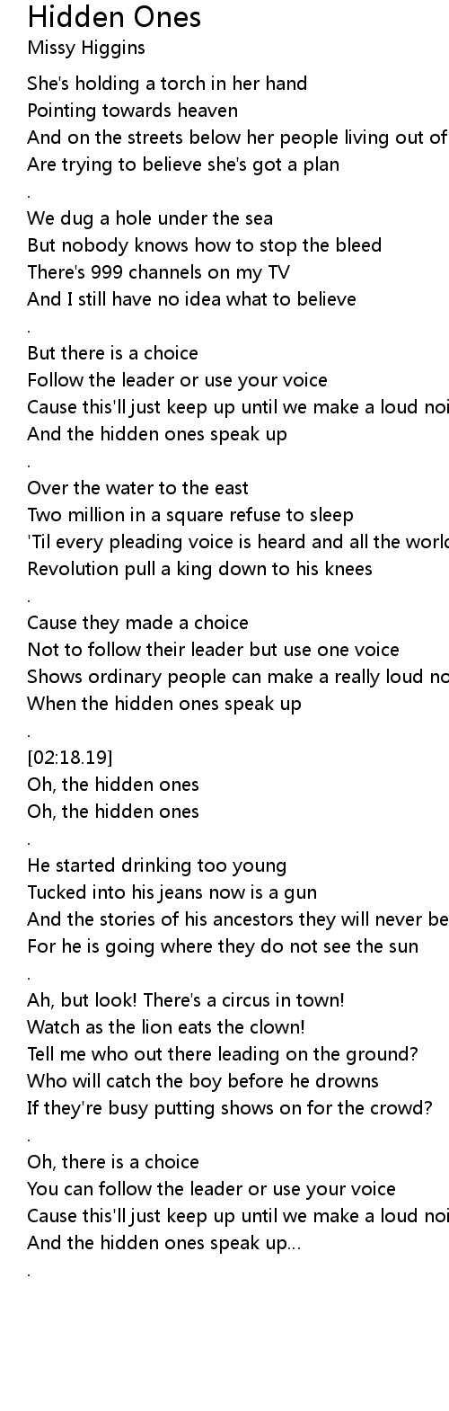 | [01:41.81] | 'Til every pleading voice is heard and all the world has seen |