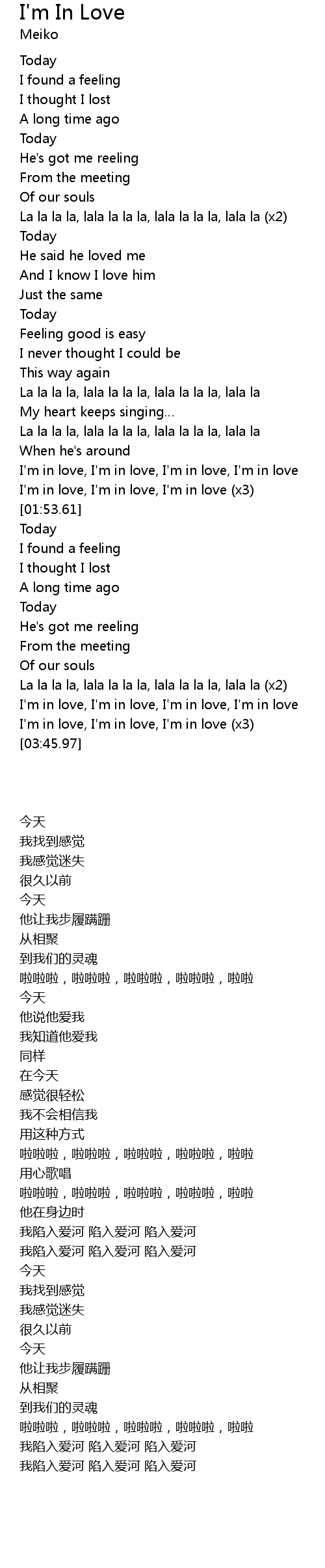 | [01:14.47] | I'm in love, I'm in love, I'm in love, I'm in love |