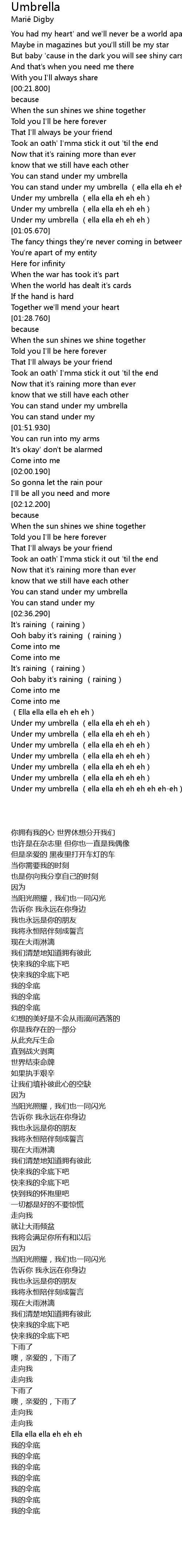 | [03:19.750] | Under my umbrella (ella ella eh eh eh) |