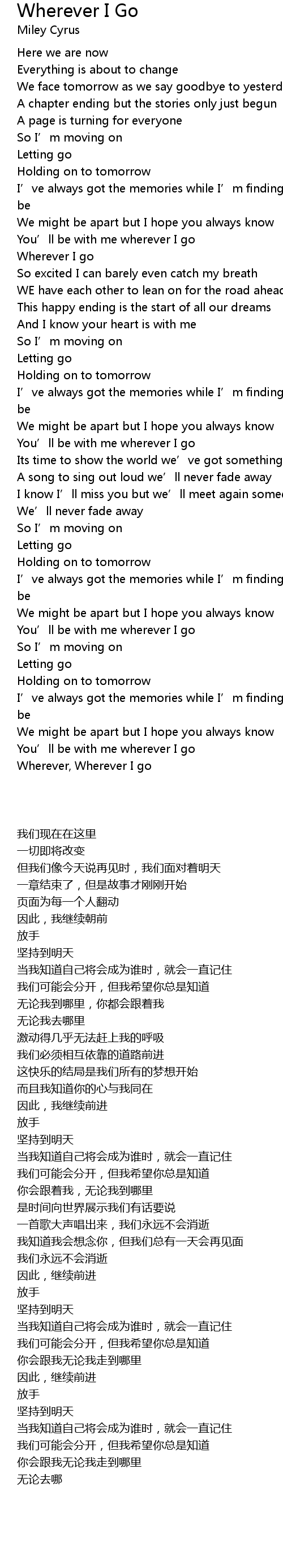 | 歌曲 | Wherever I Go |