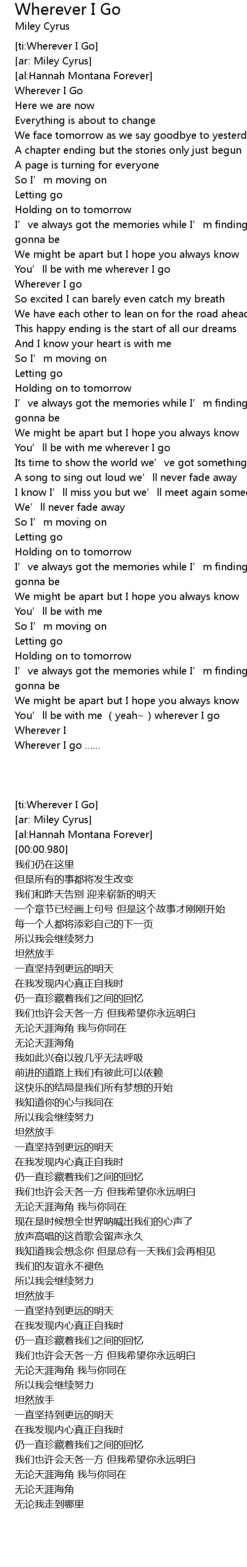 | [00:00.980] | Wherever I Go |
