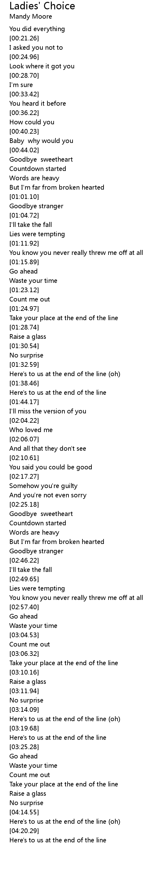 Here's to us at the end of the line (oh) |