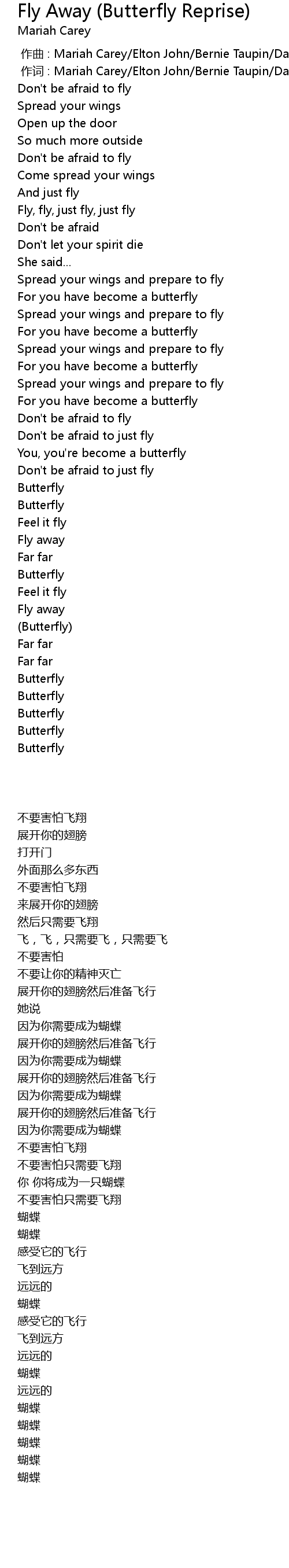 | 歌曲 | Fly Away (Butterfly Reprise) |