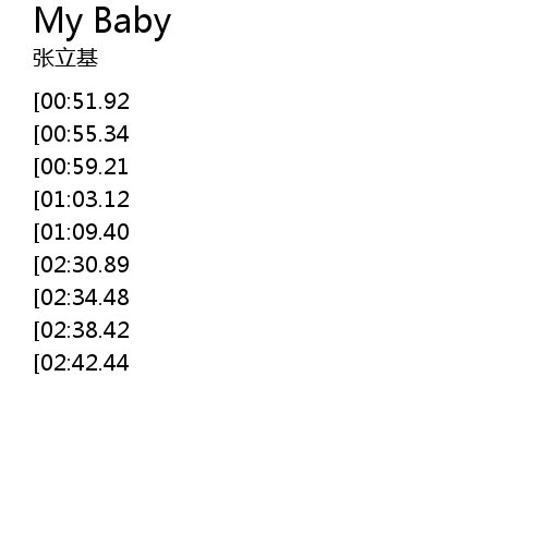 | [03:43.79][02:30.89][01:15.72] | HOLD ME MY BABY yòng liǎng bì shuō chū àn shì |