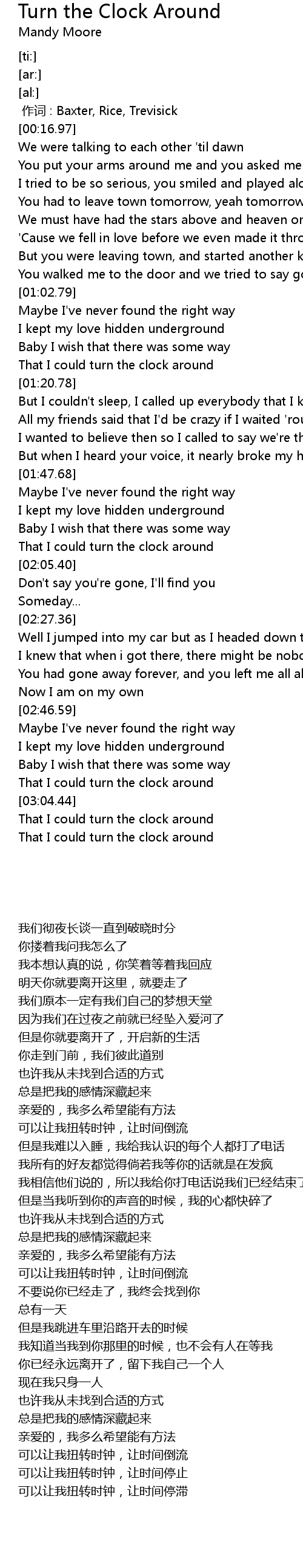 | [03:00.97] | That I could turn the clock around |