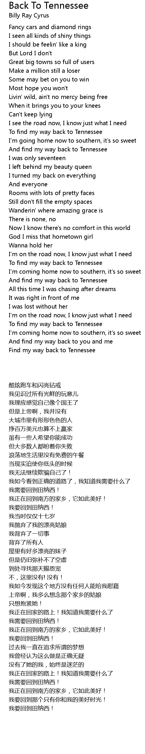 Find my way back to Tennessee |