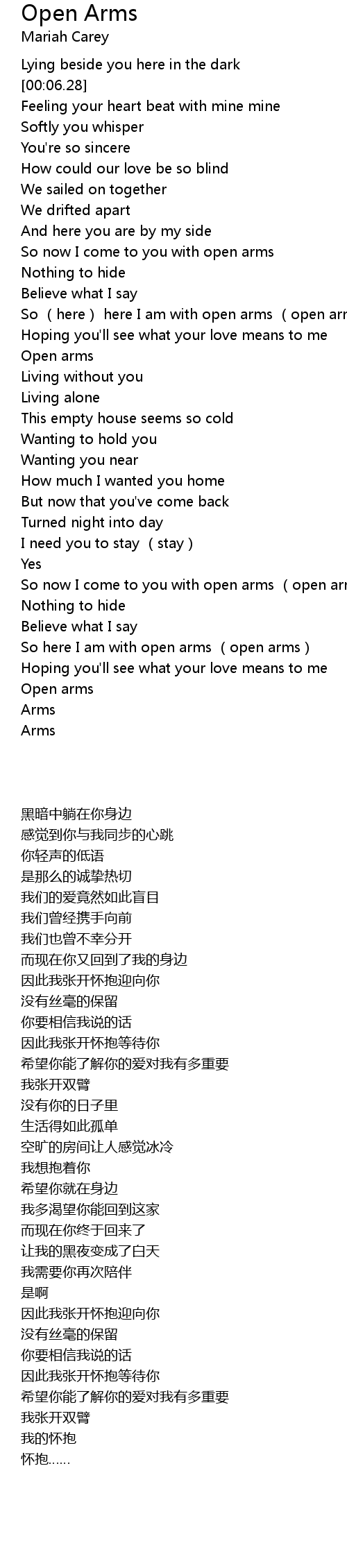 | [02:44.23] | So here I am with open arms open arms |