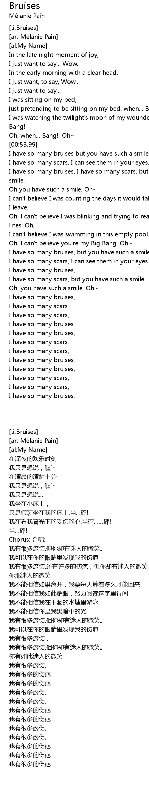 | [00:55.11] | I have so many bruises but you have such a smile. |
