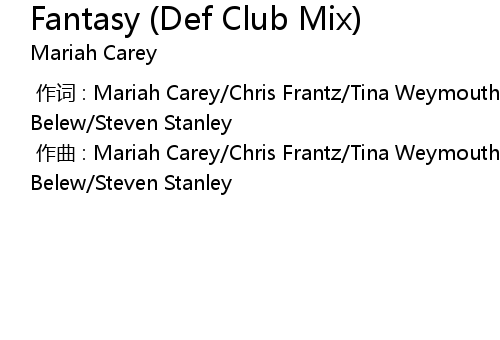| [00:00.000] | 作词 : Mariah Carey/Chris Frantz/Tina Weymouth/Dave Hall/Adrian Belew/Steven Stanley |