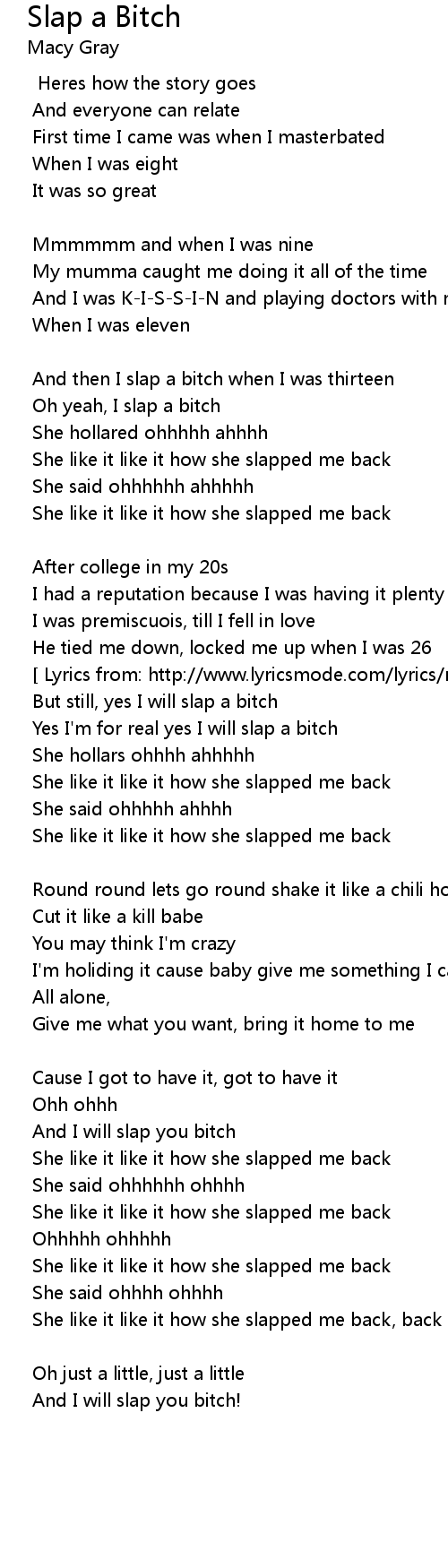 [ Lyrics from: http://www.lyricsmode.com/lyrics/m/macy_gray/slap_a_bitch.html ] |