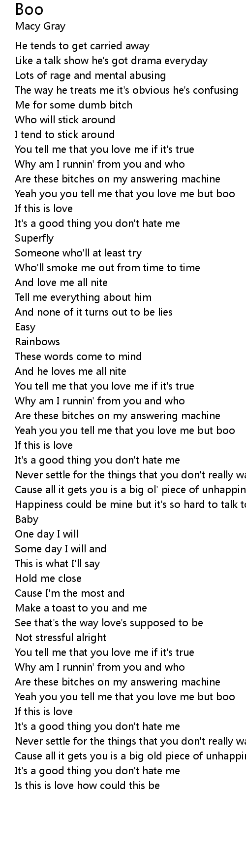 Yeah you you tell me that you love me but boo