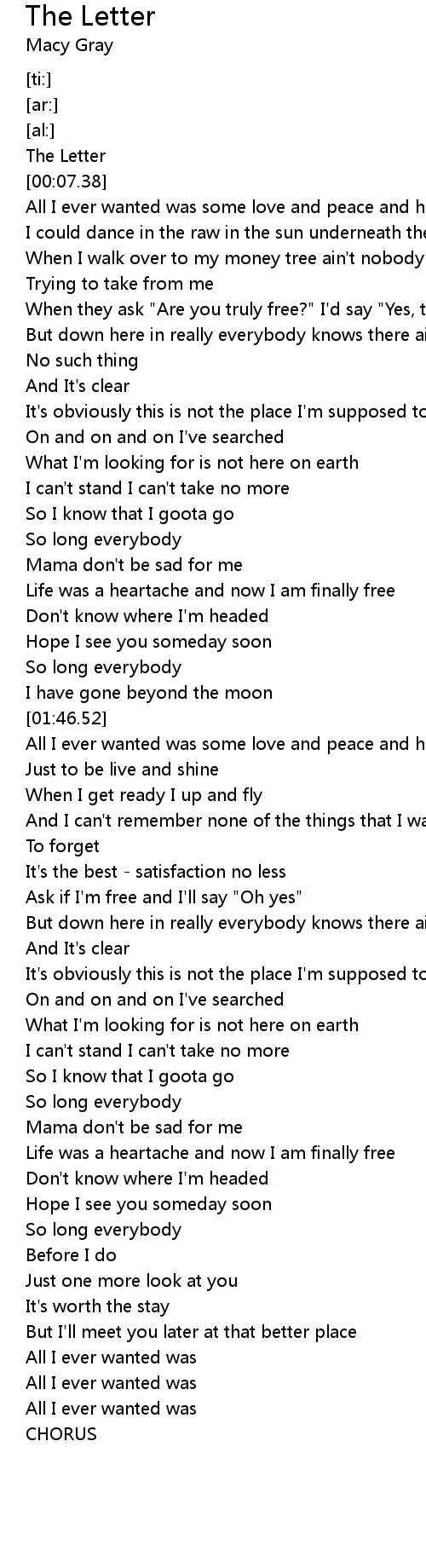 All I ever wanted was some love and peace and harmony |