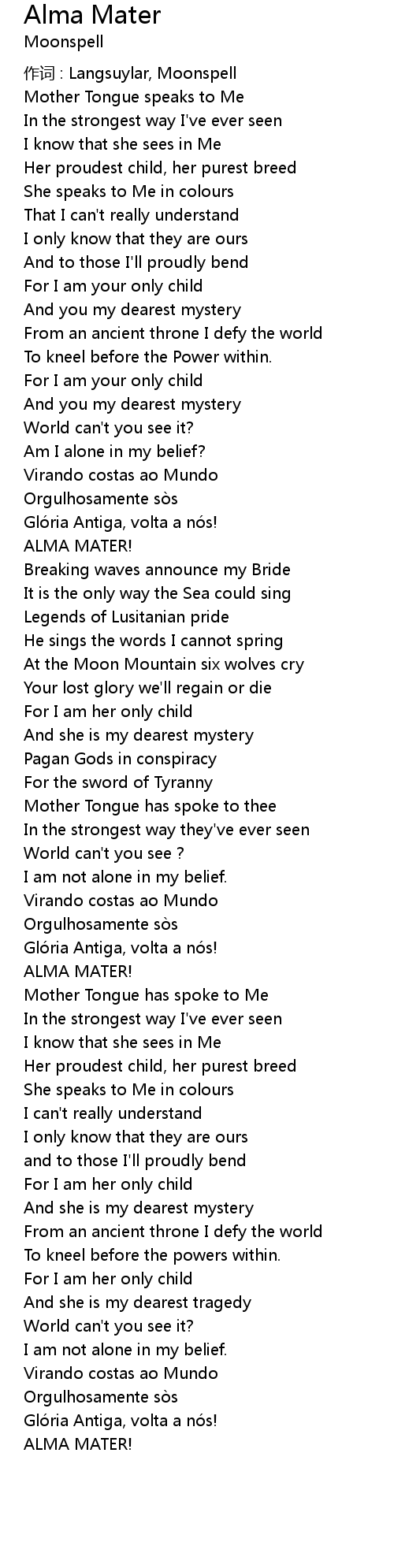 | 作词 : Langsuylar, Moonspell | |