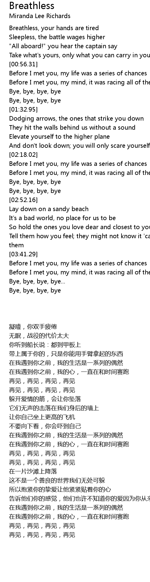 Breathless, your hands are tired |