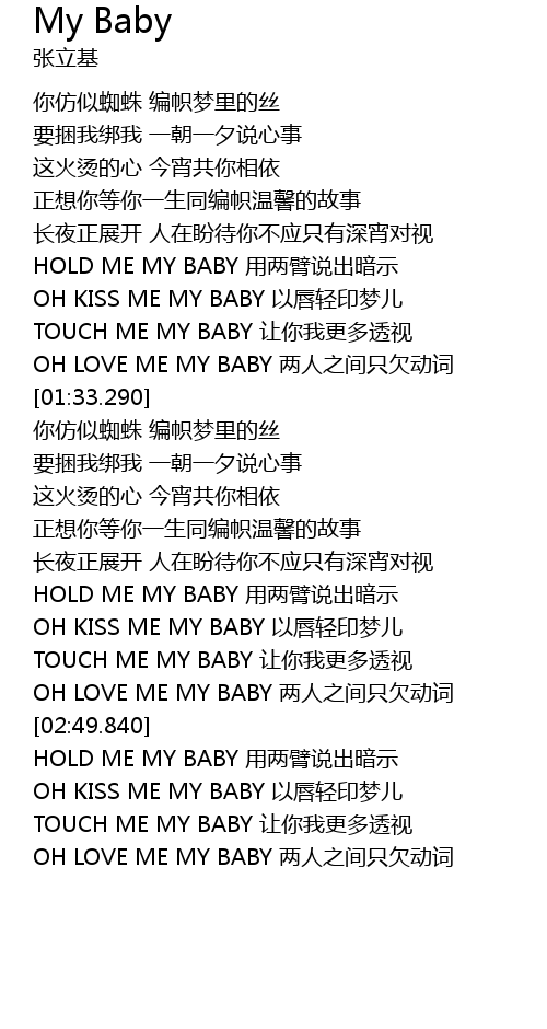 | [02:42.440] | OH LOVE ME MY BABY liǎng rén zhī jiān zhǐ qiàn dòng cí |