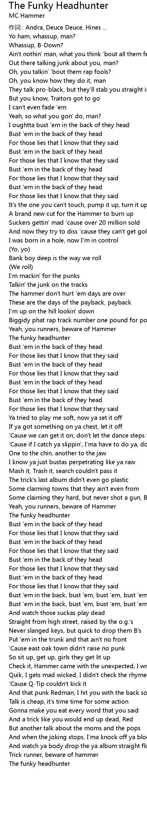 | Bust 'em in the back, bust 'em, bust 'em, bust 'em in the back | |