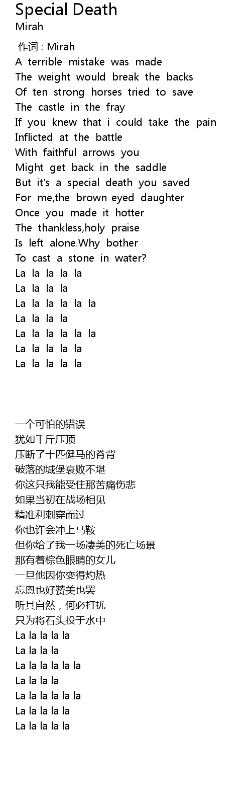 | 歌曲 | Special Death |