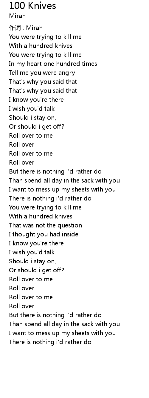 | 歌曲 | 100 Knives |