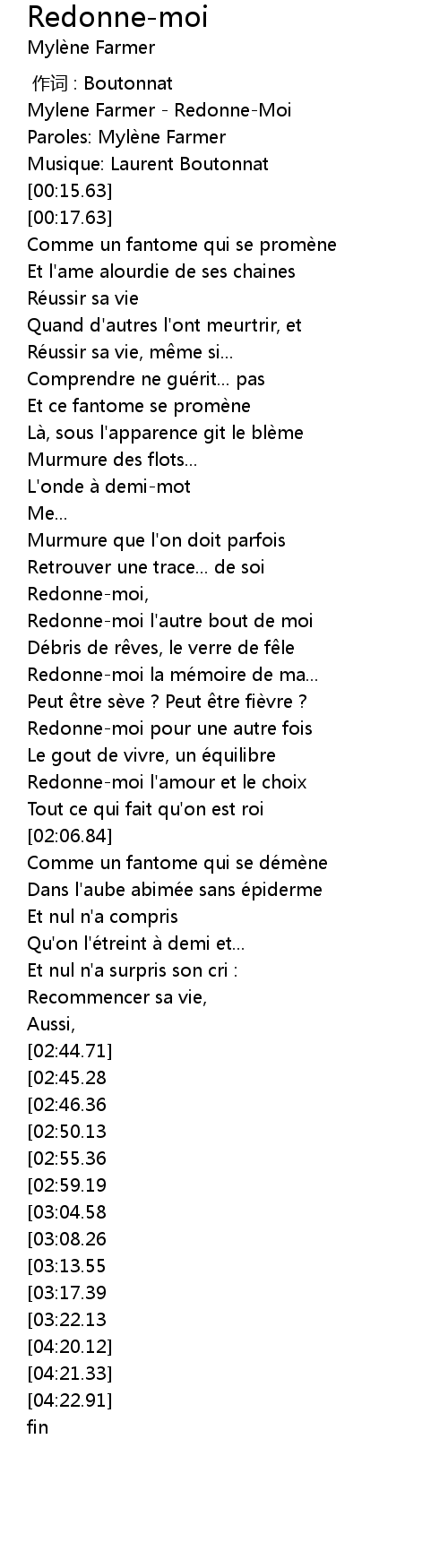 | [00:00.00] | Mylene Farmer - Redonne-Moi |