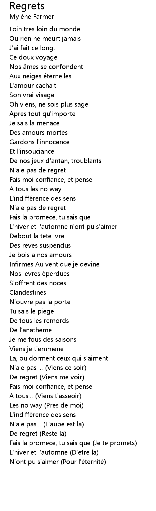 | N'aie pas de regret | |