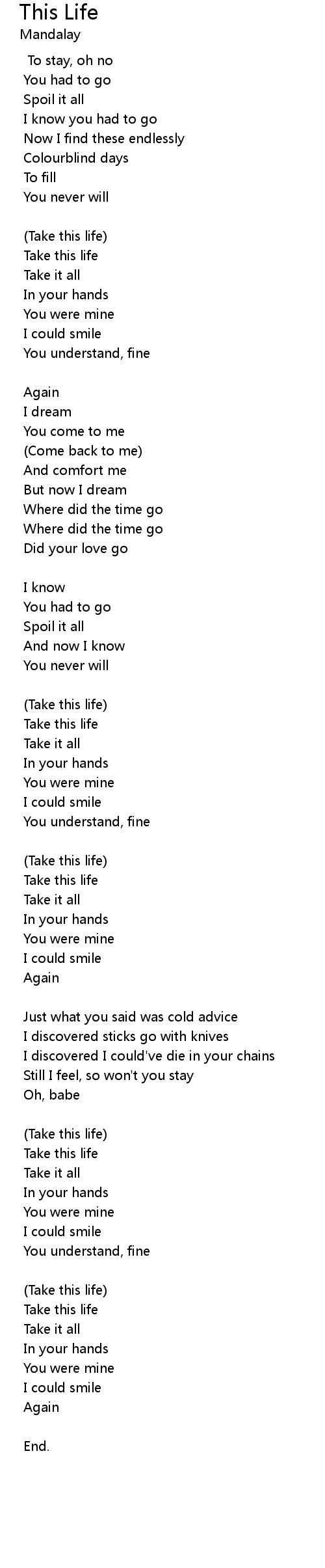 | (Take this life) | |