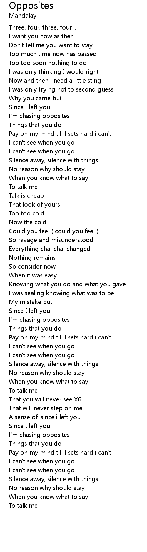| I'm chasing opposites | |