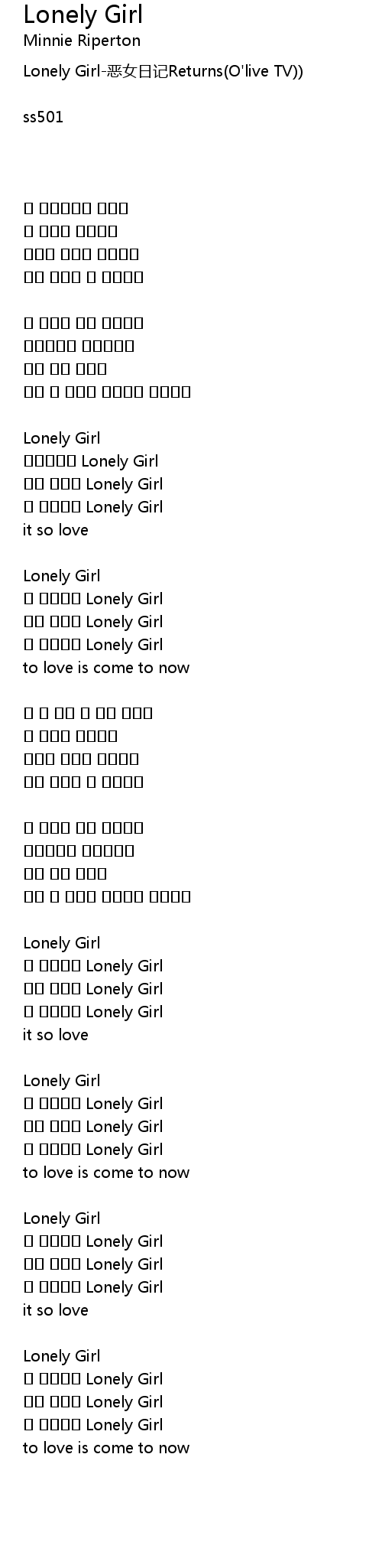 | 내 사랑스런 Lonely Girl | |