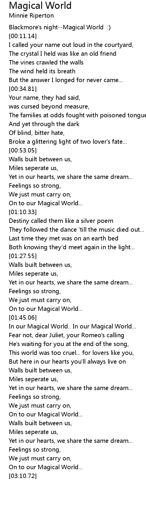 [00:06.54] Blackmore's night--Magical World :)