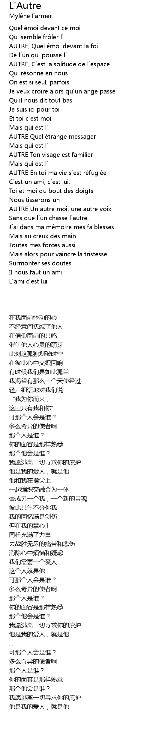| 歌曲 | L'Autre |