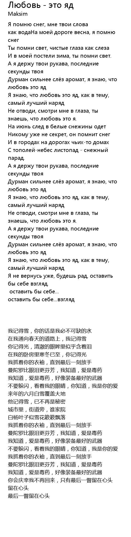 | [02:50.73] | Дурман сильнее слёз аромат, я знаю, что любовь это яд |