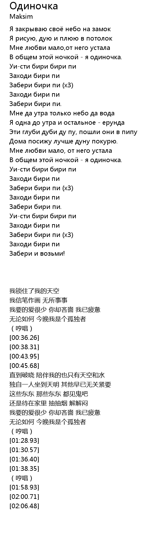 | [00:28.93] | В общем этой ночкой - я одиночка. |