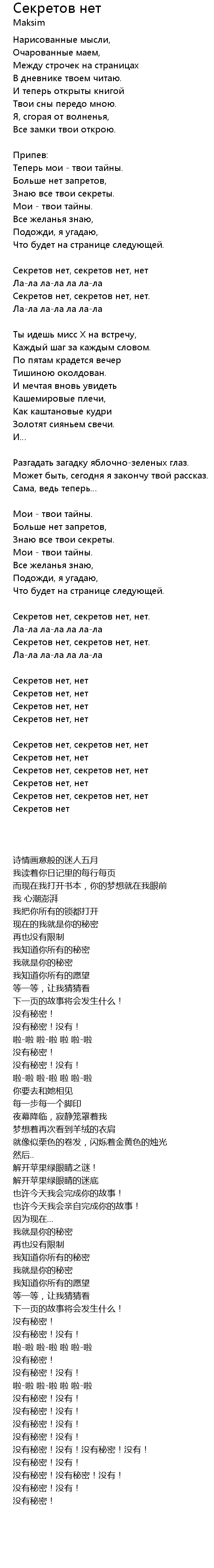 | Секретов нет, секретов нет, нет | |