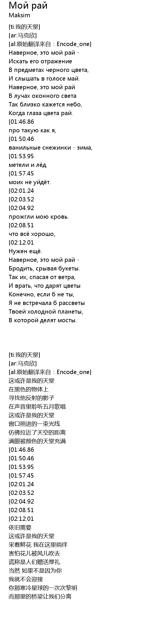 | [00:46.01][01:50.46][02:45.93] | И что в мечтах моих ванильные снежинки - зима, |