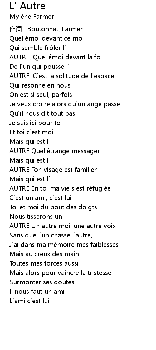 | 歌曲 | L' Autre |