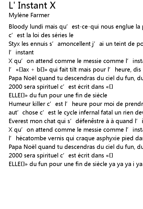 | X qu' on attend comme le messie comme l' instant magique c' est l' he catombe vernis qui craque asphyxie pied dans la tombe | |