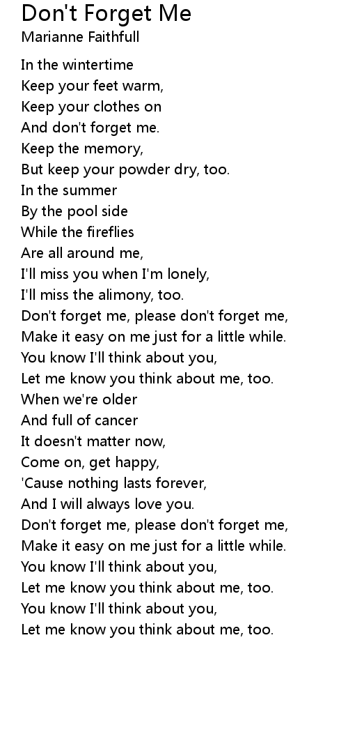 Don't forget me, please don't forget me, |