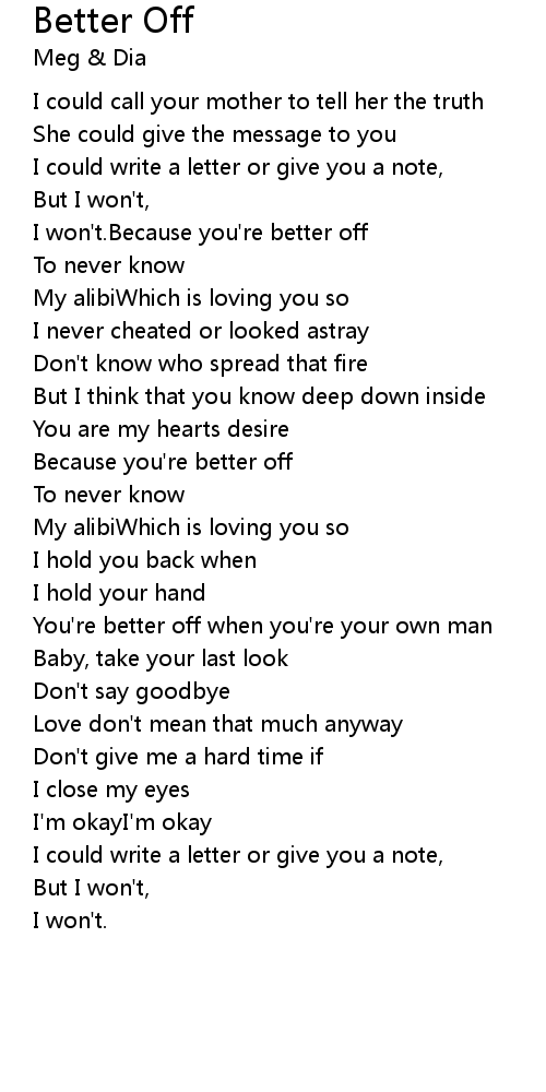 | I won't.Because you're better off | |
