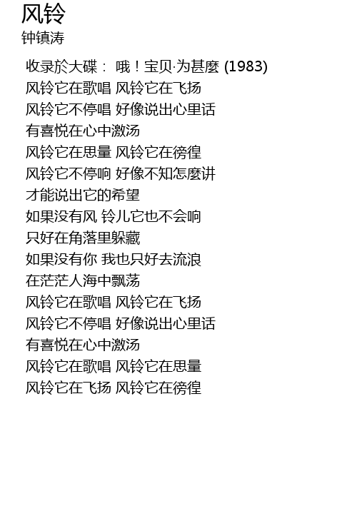 | 风铃它在歌唱 风铃它在思量 | |