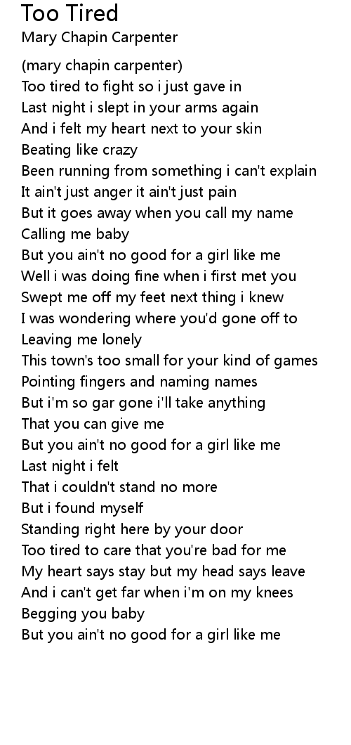 Too tired to care that you're bad for me |