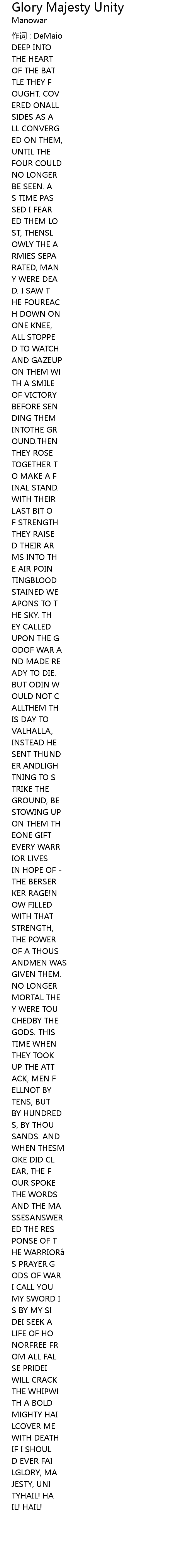 作词 : DeMaio |