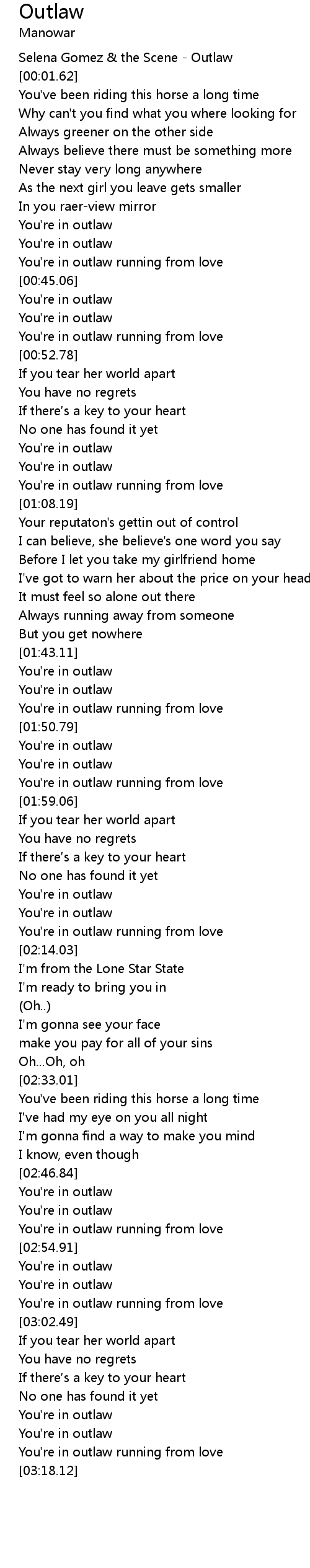| [00:45.95] | You're in outlaw |