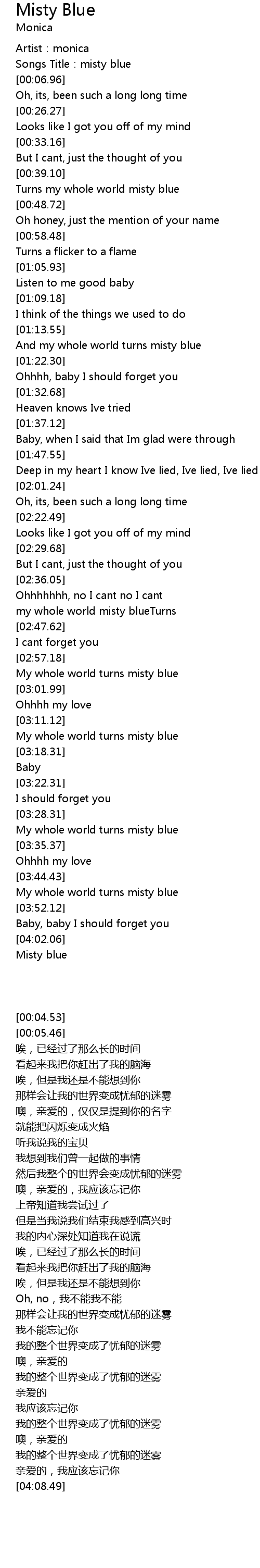 | [04:08.49] | Misty blue |
