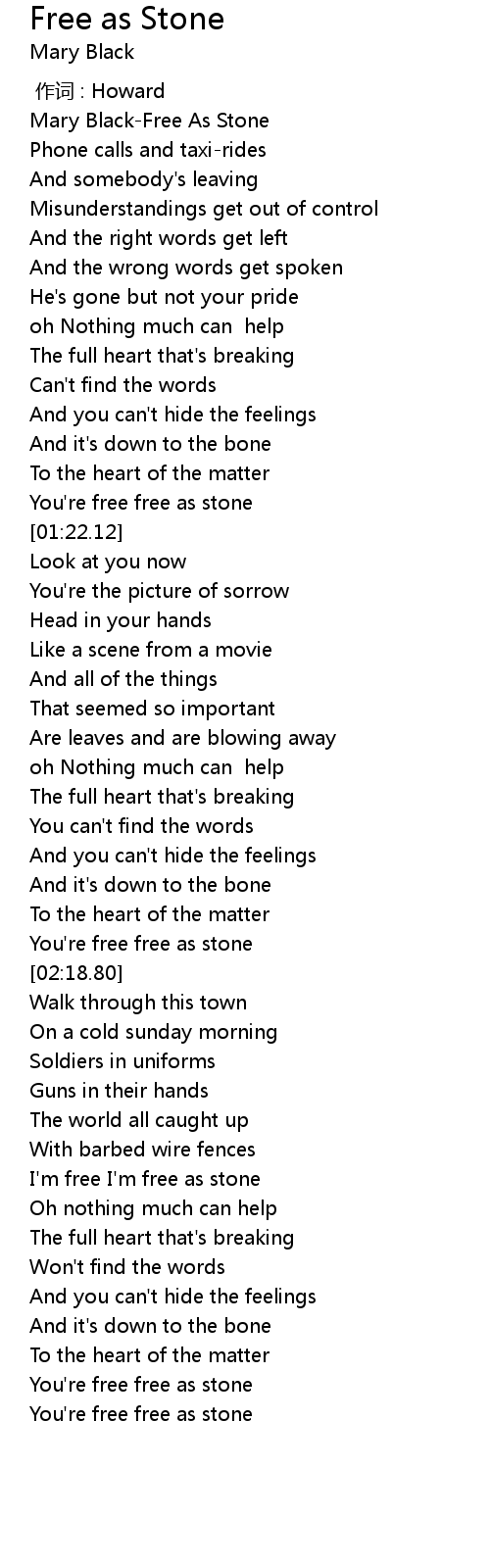 | [02:13.74] | You're free free as stone |
